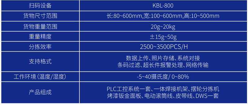 ◆ 功能:扫码、称重、测量体积(选配)、智能分拣、异常剔除、自动揽收;